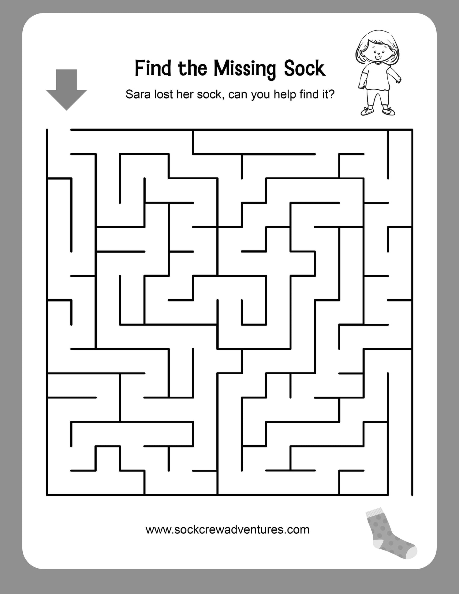 Sara lost one of her socks! Search the maze to help Sara find her sock.